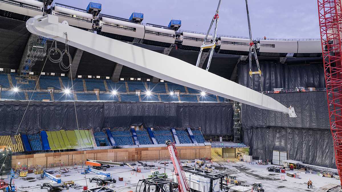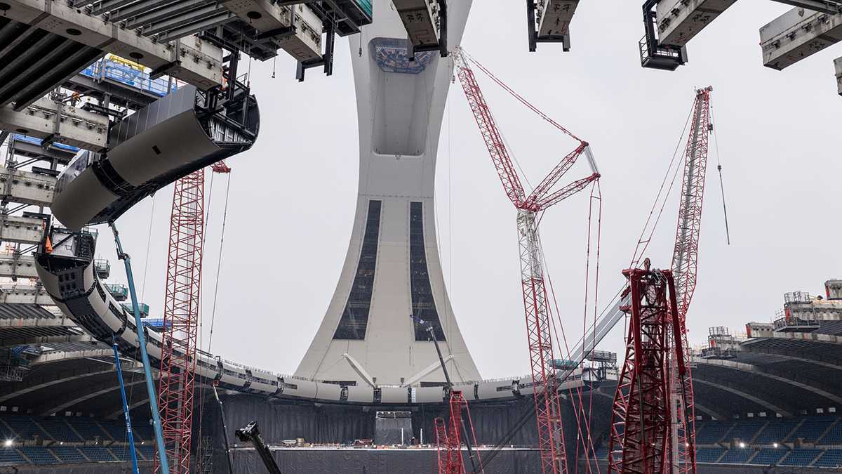 La renovación del Estadio Olímpico de Montreal incluye la sustitución de un elemento clave: la sección central de su techo. Aunque pueda parecer algo sencillo, todo el proceso es complejo y muy costoso, y su ejecución llevará cuatro años, durante los cuales el estadio permanecerá fuera de servicio.