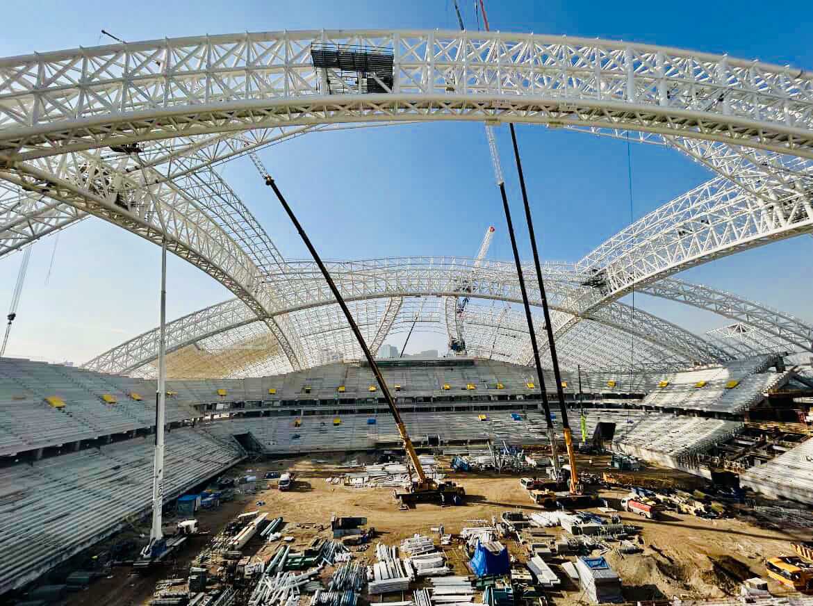La cúpula será sostenida por cuatro enormes arcos. Dos de ellos (los que discurren a lo largo del terreno de juego) medirán 285 m y serán de los mayores utilizados en estadios de todo el mundo.