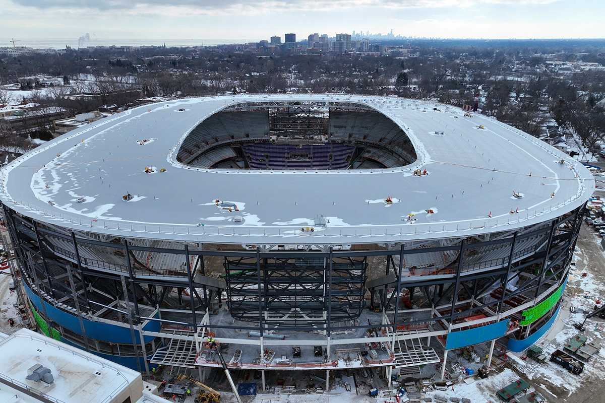 Mientras duren las obras del nuevo estadio, el equipo de fútbol americano de los Northwestern Wildcats se trasladará más de una milla (2 km) al este de su campus universitario, donde se encuentra el modesto Martin Stadium, a orillas del lago Michigan -durante dos temporadas, la instalación recibirá gradas provisionales que aumentarán su capacidad a 15.000 espectadores.