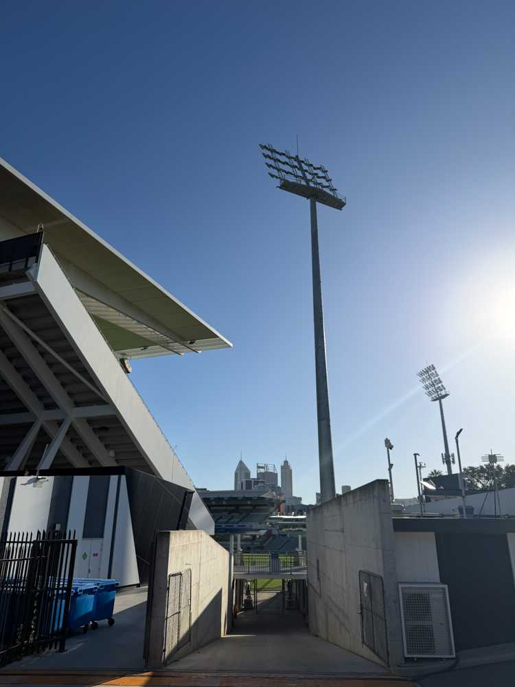 Casi irónicamente, durante todo un siglo su diseño fue ovalado en lugar de rectangular. La conversión a un campo rectangular ocurrió en 2004 como resultado de una demanda real. Ya se habían colocado gradas temporales de tubos en partes del campo ovalado para acercar a los fanáticos, lo que obligó a las autoridades a crear un entorno más adecuado para el fútbol. Se creó un nuevo recinto hundido con 13 filas, principalmente para los aficionados del Perth Glory FC.