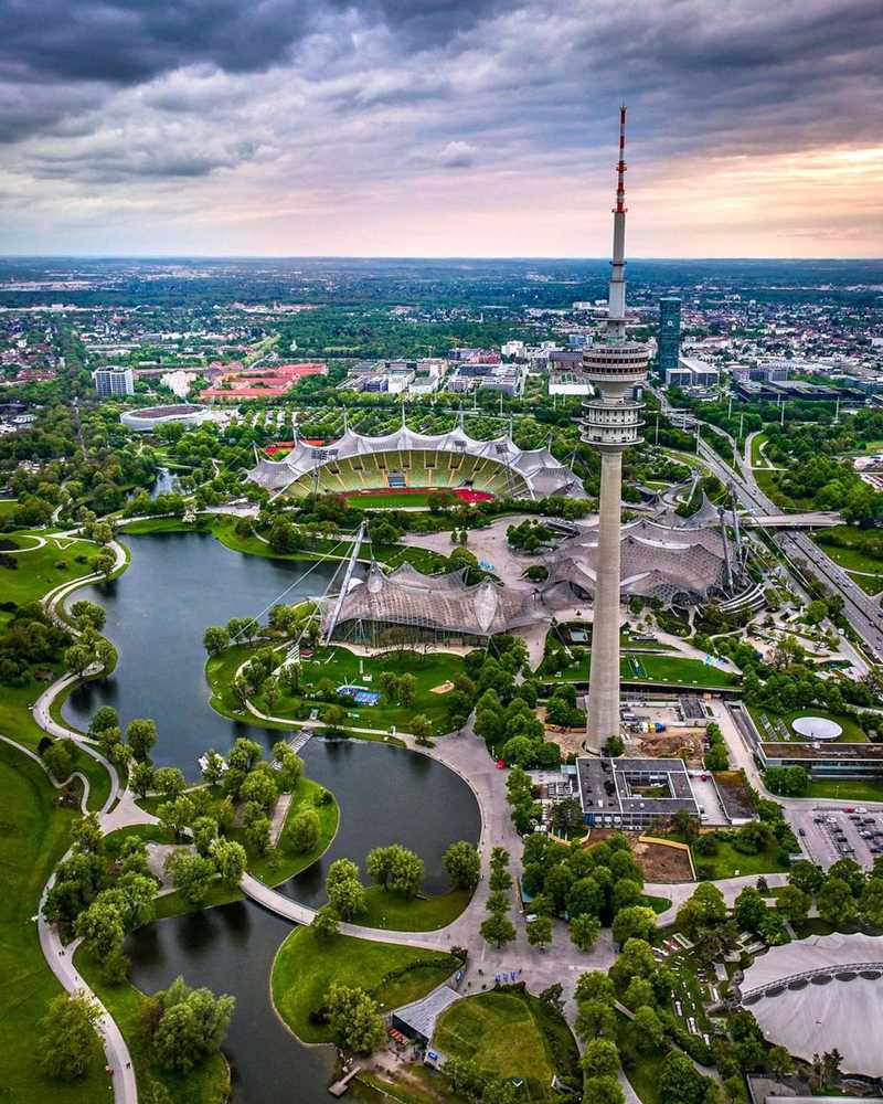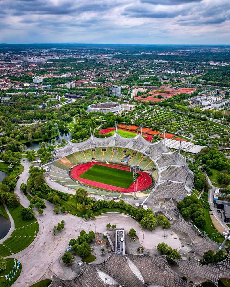 Su arquitectura combina función y simbolismo. El estadio se levantó sobre un terreno modelado artificialmente, reutilizando escombros de guerra de la Múnich bombardeada para crear la llamada Colina Olímpica. Así, el recinto quedó parcialmente integrado en el paisaje, un enfoque novedoso en su época. Se aplicaron técnicas y materiales avanzados, y la idea de ligereza visual frente a la monumentalidad fue un contrapunto a las formas asociadas al Tercer Reich. Hoy, el estadio muniqués sigue siendo una icono del siglo XX y uno de los recintos deportivos más reconocibles del mundo.