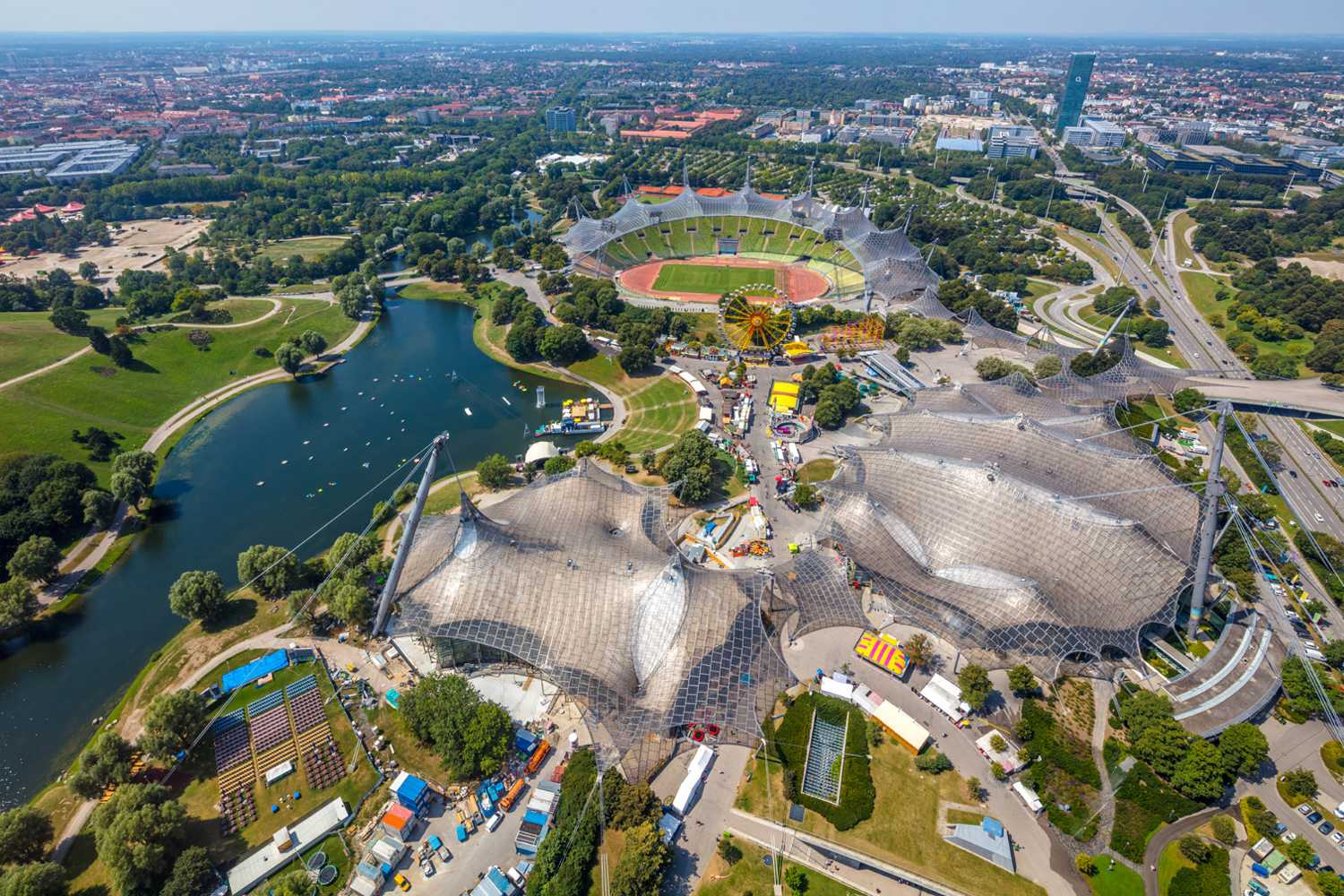 El estadio sigue formando parte del Olympiapark München, complejo deportivo-recreativo levantado sobre antiguas escombreras y áreas de almacén de posguerra. Toda la inversión tuvo un carácter simbólico: presentar a una Alemania moderna, democrática y pacífica, en contraste con los Juegos de Berlín de 1936. La elección del nombre Olympiastadion tuvo, por tanto, también un significado histórico y de imagen.