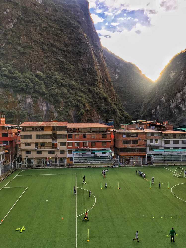 El modesto estadio de la pequeña ciudad de Machupicchu (Machupicchu Pueblo) es una de las instalaciones deportivas más interesantes del mundo en cuanto a la ubicación. La ciudad se encuentra en el estrecho valle del río Urubamba, rodeada por las empinadas y boscosas laderas de los Andes. El entorno natural crea aquí un paisaje único.