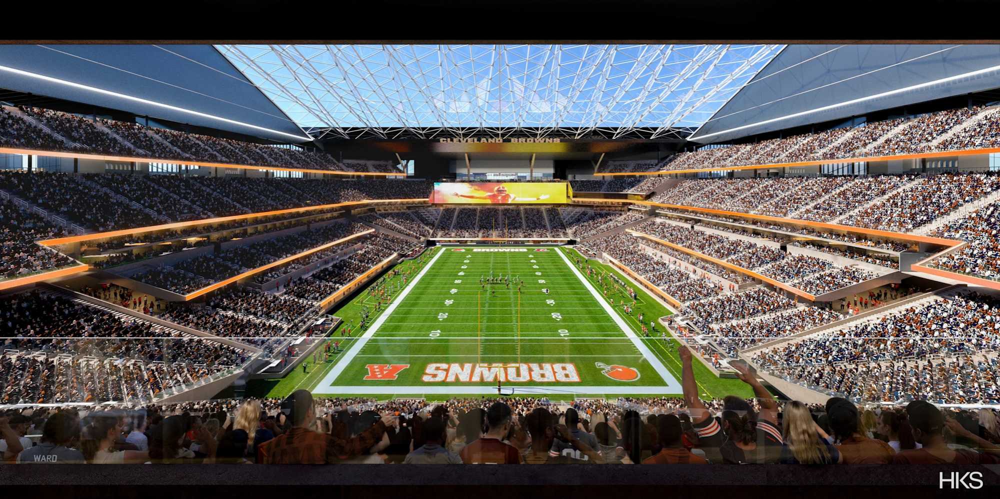 No obstante, poco después, el 7 de agosto de 2024, los Cleveland Browns enviaron una carta a sus aficionados y presentaron oficialmente las visualizaciones del nuevo estadio, que se construiría en Brook Park. La visión del estadio fue desarrollada por HKS Architects, uno de los estudios líderes en diseño de instalaciones deportivas.